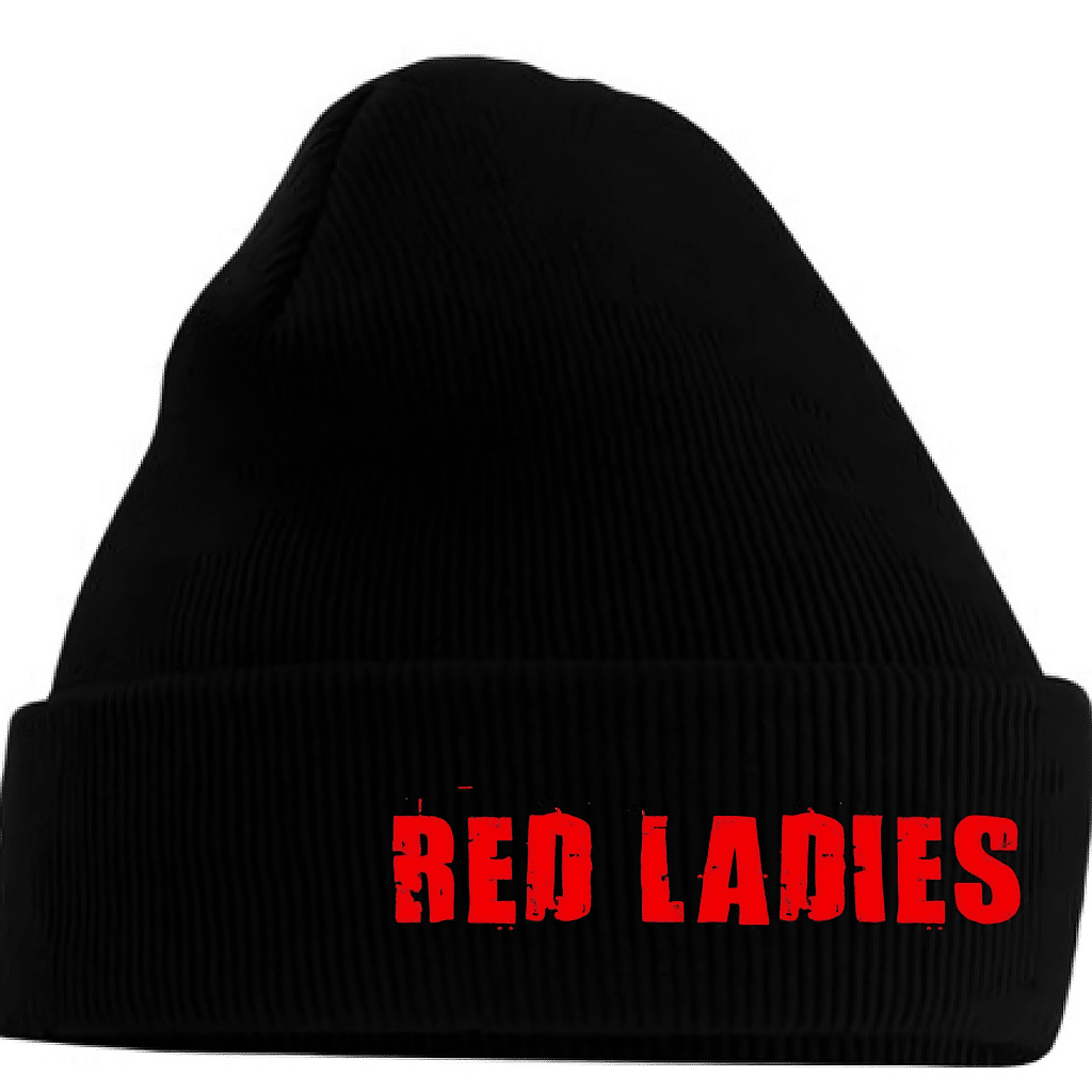 100-0003 Art Nr. Mütze Schwarz mit Roten Red Ladies auf Strick