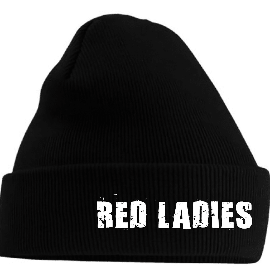 100-0004 Art Nr. Mütze Schwarz mit Weißen Red Ladies auf Strick