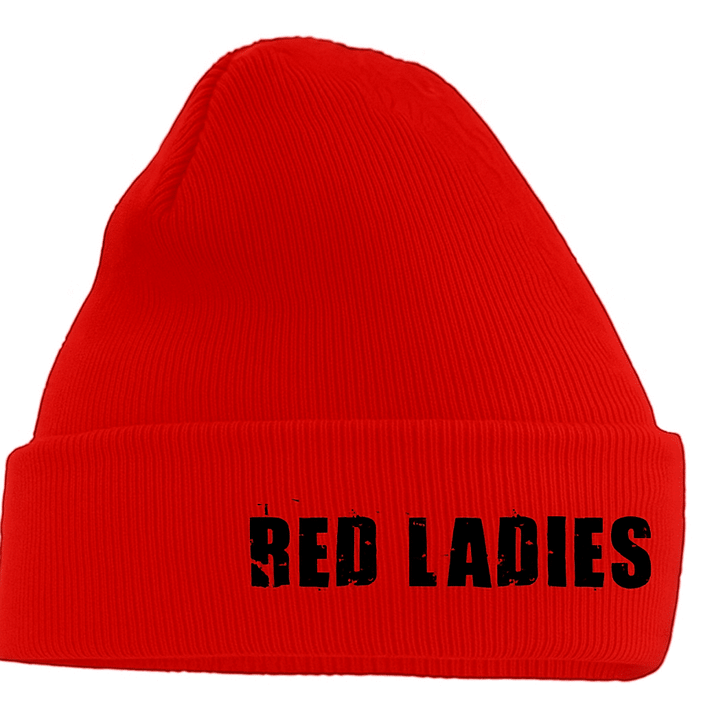 100-0005 Art Nr. Mütze Rot mit Schwarzen Red Ladies auf Strick